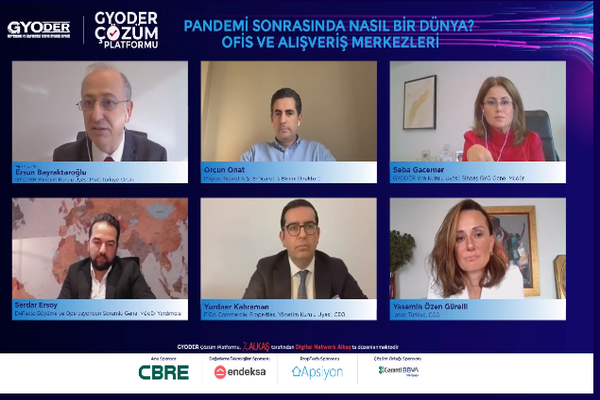 Türkiye gayrimenkul sektörünün çatı örgütü GYODER’in, mevcut sorunlara çözüm bulmak amacıyla hayata geçirdiği ‘GYODER Çözüm Platformu’nun beşinci toplantısı, ‘Pandemi sonrasında nasıl bir dünya? Ofis ve Alışveriş Merkezleri’ başlığı altında online olarak düzenlendi.